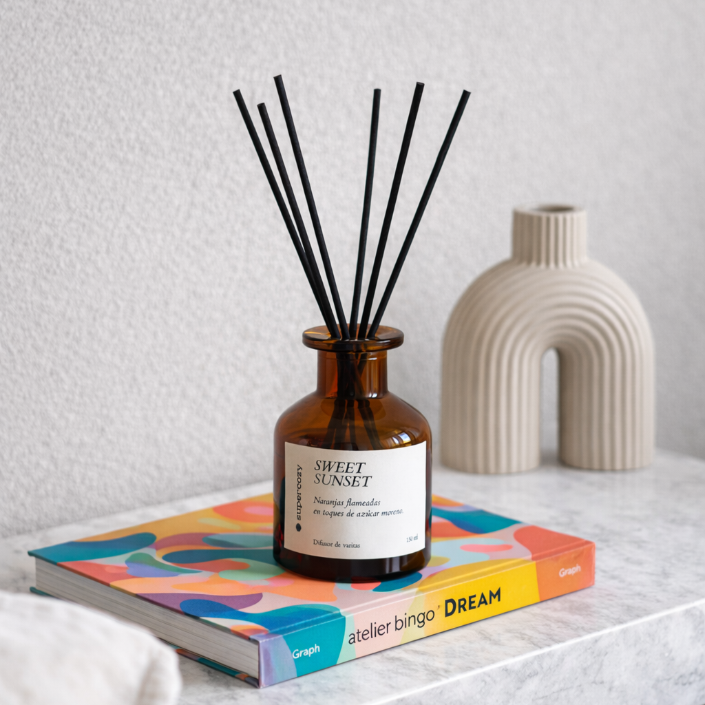Nuestros difusores de varitas están hechos a mano y pensados para espacios con personalidad. Liberan el aroma de forma sutil y constante.